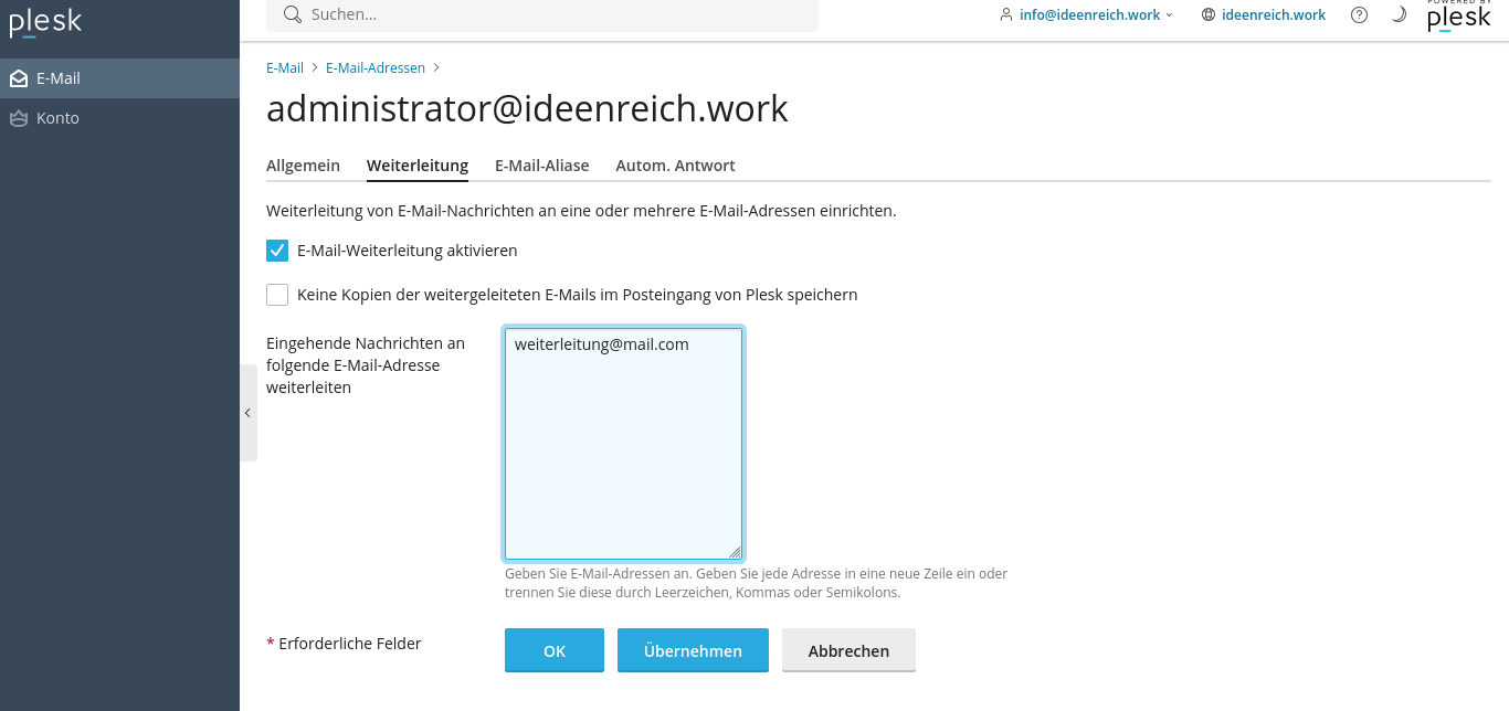 Mit ihrem EMail-Service Paket erhalten Sie ein Administrationskonto für alle EMailadressen. Loggen sie sich damit ein, um alle Einstellungen vorzunehmen.