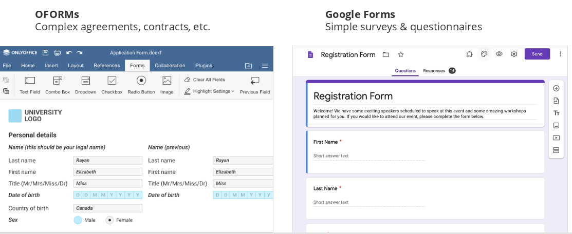 Komplexe Formulare in Onlyoffice vs. Google Forms
