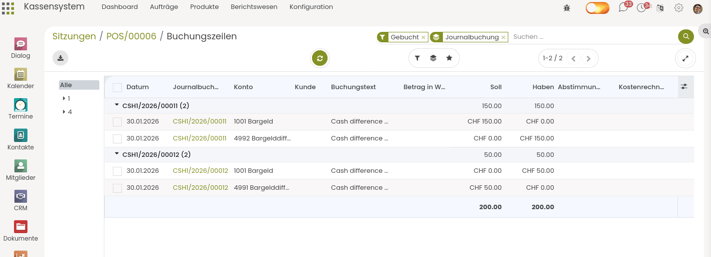 Die Buchungszeilen für die Vorgänge werden automatisch im System geführt